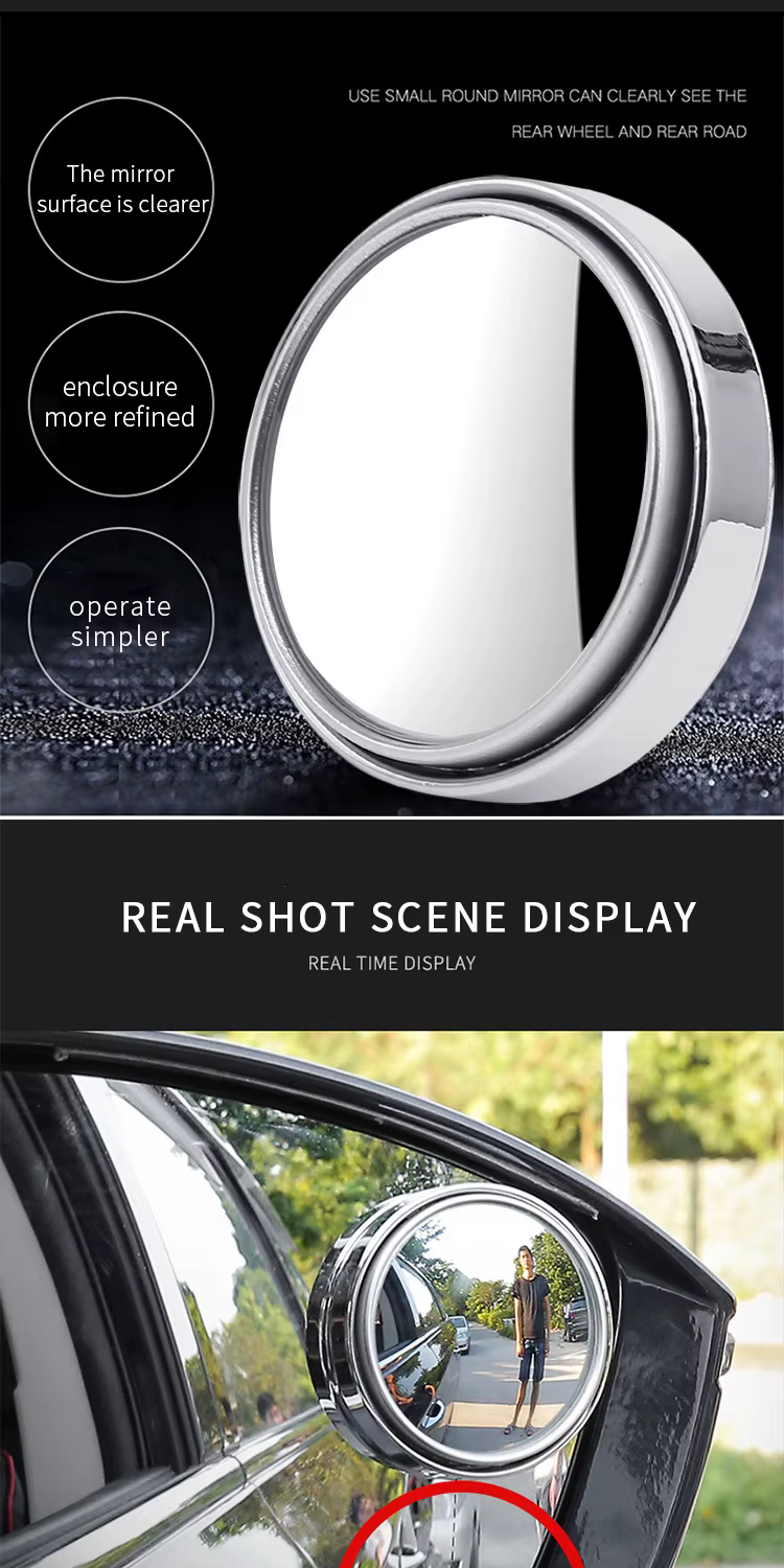 - تصميم أنيق وصغير الحجم: ما ياخدش مساحة على المرايا الأصلية ويضيف لمسة أنيقة من غير ما يضعف الرؤية.