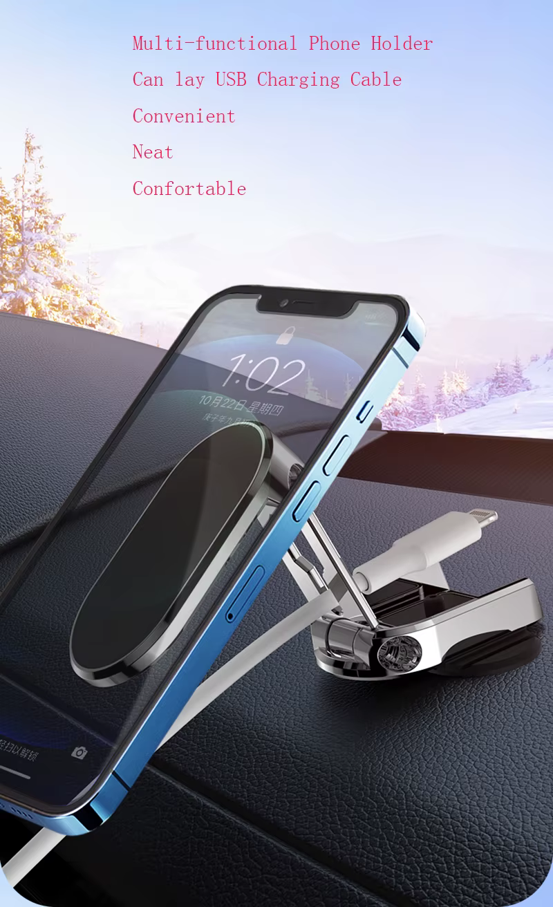 هل تبحث عن طريقة آمنة وعملية لتثبيت هاتفك أثناء القيادة دون أن يشوش على رؤيتك للطريق؟ حامل الهاتف المغناطيسي القابل للطي والتعديل هو الحل الأمثل ليمنحك حرية استخدام هاتفك بسهولة وأمان. بفضل تصميمه العصري وحجمه الصغير، ستحصل على تجربة قيادة أكثر راحة مع الحفاظ على هاتفك ثابتاً في مكانه.