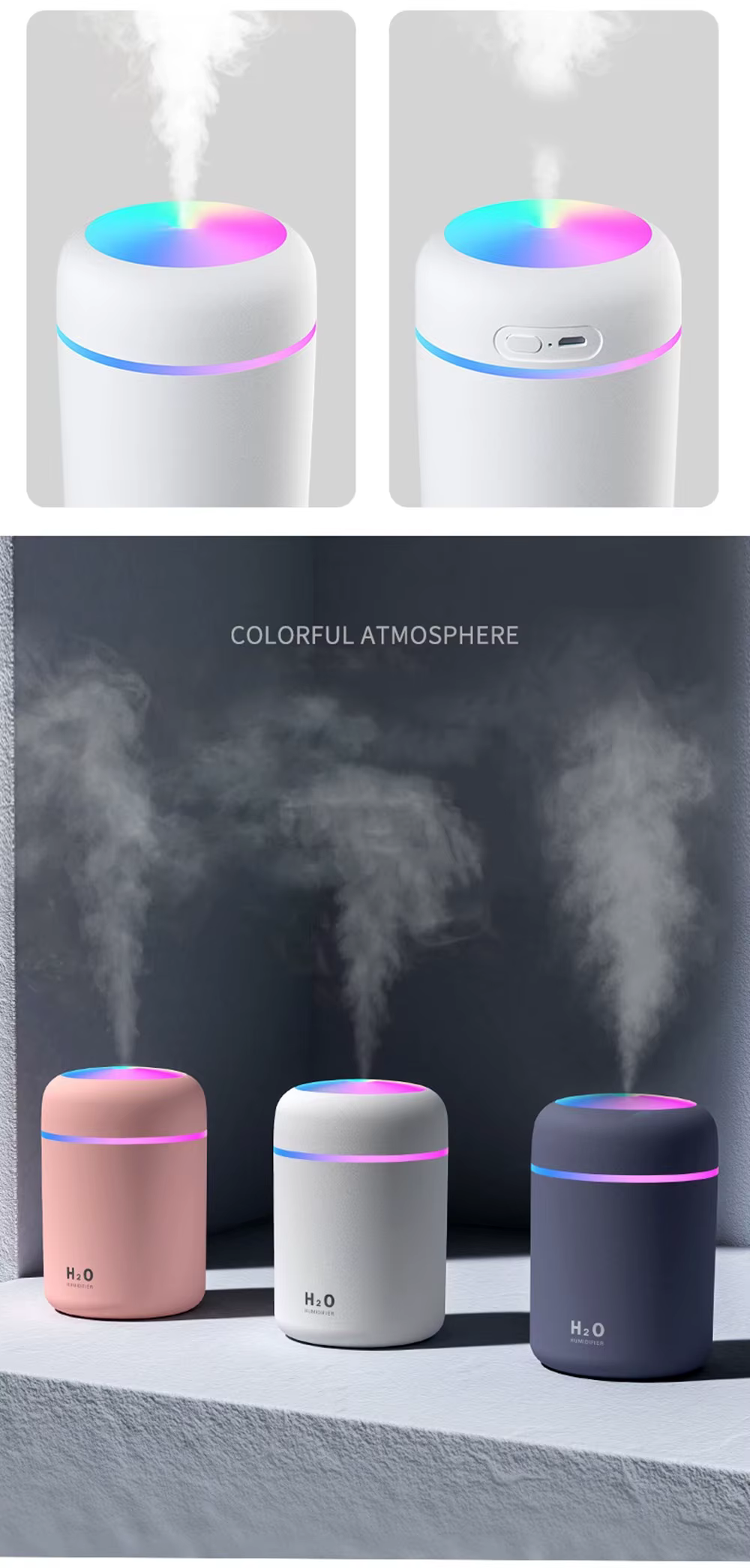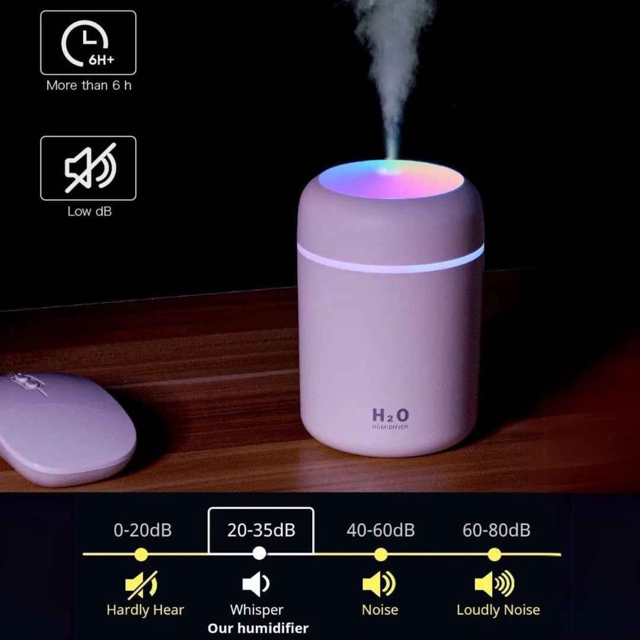 خلي هواء بيتك أو عربيتك دايمًا منعش ومليان ريحة حلوة مع مرطب الجو والفواحة H₂O. تصميمه الأنيق وصوته الهادي هيخلوك تستمتع بجو مريح، وفي نفس الوقت الإضاءة الليد الملونة هتدي لمسة جمالية ومزاج أحسن.
