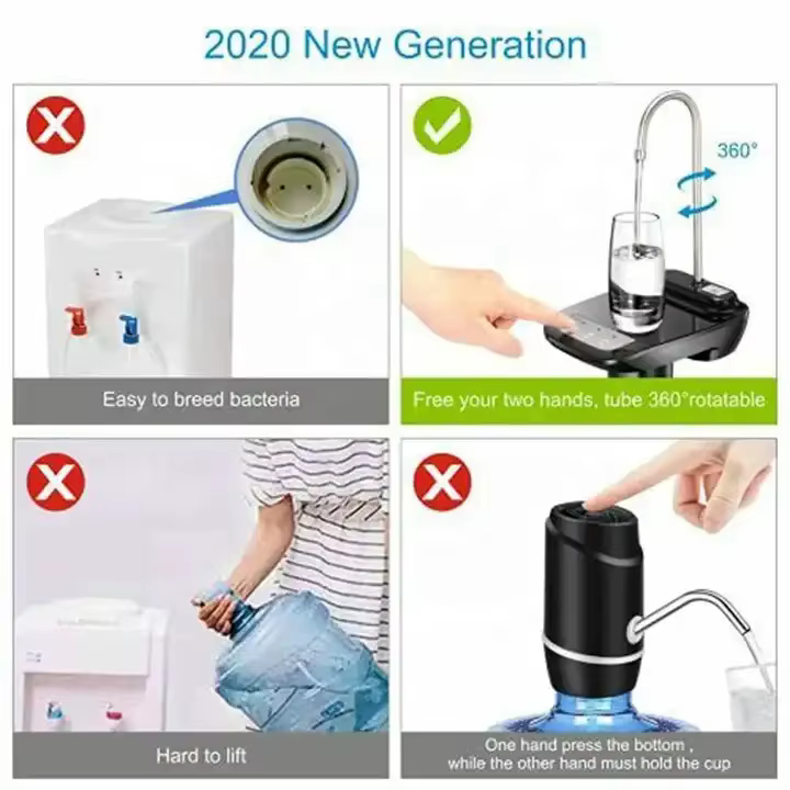 لو بتعاني من رفع الزجاجات الكبيرة أو عاوز حل عملي وسريع لملء الكوبايات أو الزجاجات بالمياه، مضخة المياه الكهربائية هي الحل الذكي اللي هيوفر مجهودك ووقتك في البيت أو الشغل أو حتى في الرحلات.