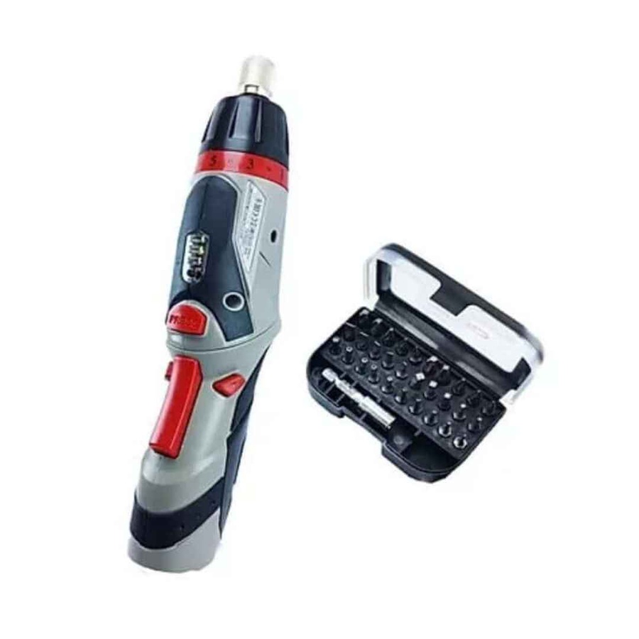 مفك إلكتروني عملي ببطارية قابلة للشحن، هيساعدك في الفك والربط بسهولة ومن غير مجهود. تصميمه ذكي بيدور لشكل مسدس أو بالطول حسب راحتك، ومعاه كشاف LED علشان تشتغل بوضوح حتى في الإضاءة الضعيفة.