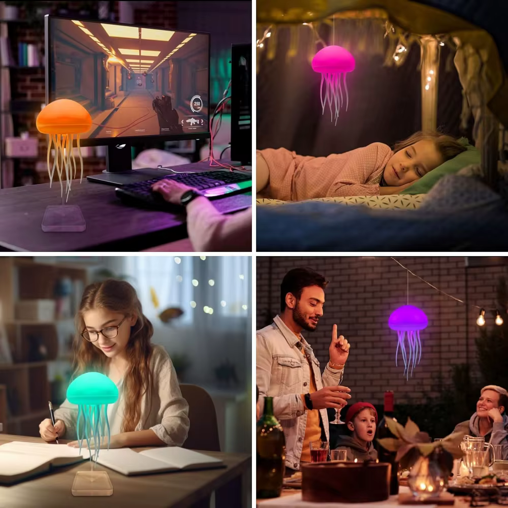 لو نفسك تضيفي لمسة هادية ومريحة لبيتك أو مكتبك، مصباح قنديل البحر الراقص هو الاختيار المثالي. تصميمه الأنيق وإضاءته المريحة هيحول أي مكان لجو استرخاء وراحة.