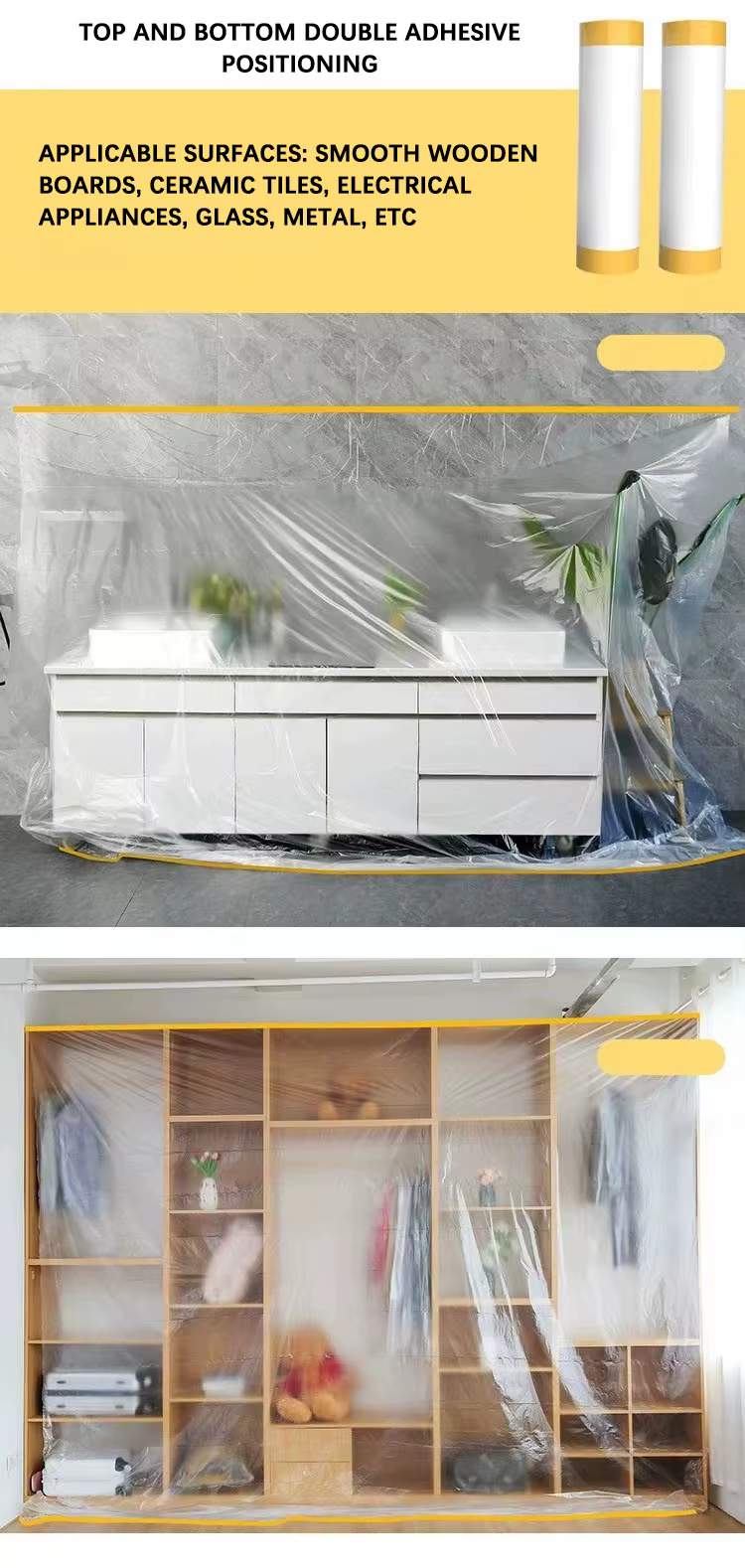 الاستخدامات: حماية الأثاث – الأرضيات – أثناء الدهان – عزل الشبابيك – أثناء السفر والتنظيف