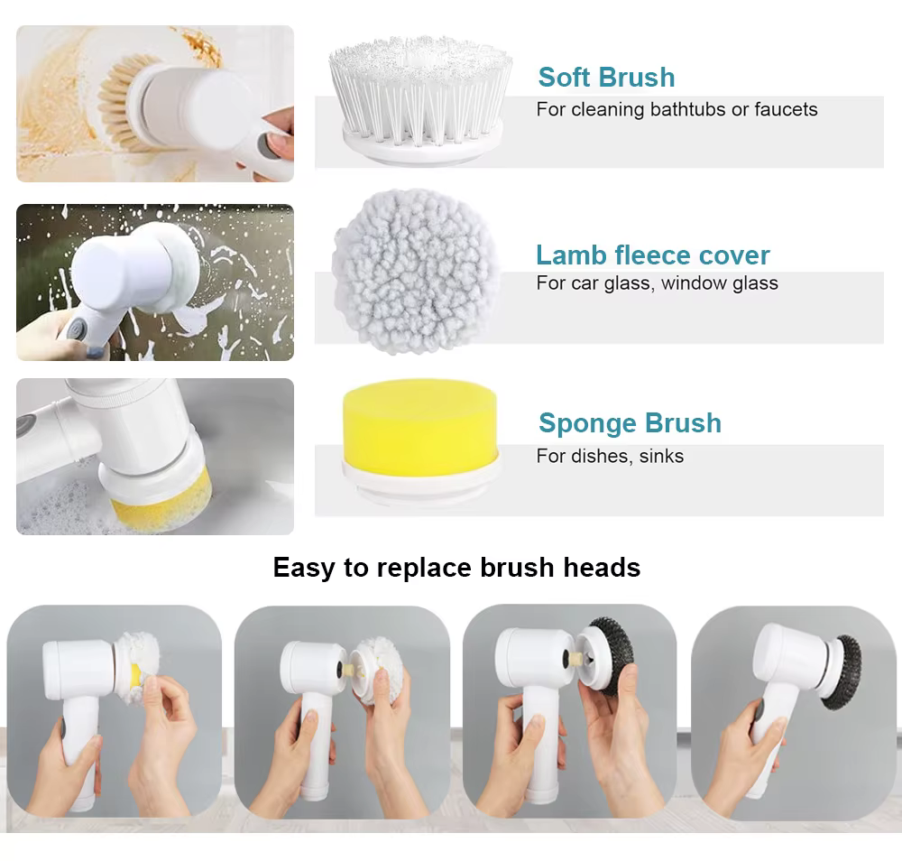 Household Multifunctional Handheld Electric Cleaning Brush Dishwashing 5-piece Set
