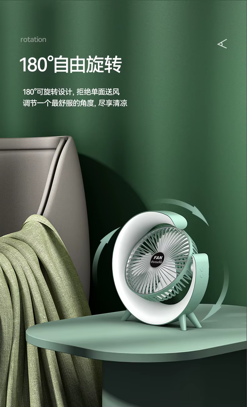 مروحة وإباجورة 2 في 1 – هواء منعش مع إضاءة مريحة في منتج واحد. مثالية للاستخدام في المكتب، غرفة النوم، أو أثناء الرحلات، حيث توفر لك الهدوء والراحة في أي وقت.