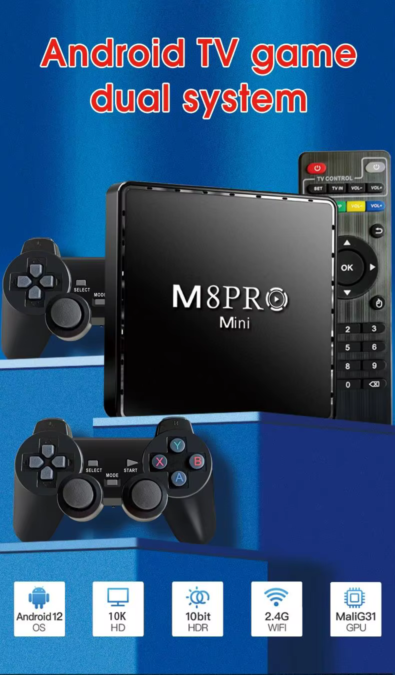 جهاز Android TV BOX & Game Stick 10K هو اختيارك المثالي لو عايز تجمع بين متعة الألعاب وتجربة المشاهدة المميزة. هتلاقي فيه مكتبة ضخمة بأكتر من 10,000 لعبة، وكمان بيوفرلك جودة صوت وصورة عالية تخليك تحس إنك في السينما.